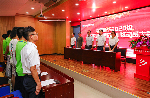 摘要 : 2020年8月31日,在南京新華報(bào)告廳,我們迎來(lái)了“南京新華電腦專修學(xué)院2020級(jí)新生職業(yè)素質(zhì)拓展訓(xùn)練開幕儀式”。希望同學(xué)們能夠不怕苦累,不畏艱難,堅(jiān)持不懈,斗志昂揚(yáng),用蓬勃向上的精神面貌,去迎接訓(xùn)練中的各種挑戰(zhàn)!